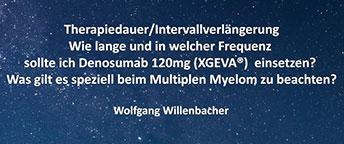 Nun, außerhalb von Notfallsettings, und da gibt es eigentlich nur eines, nämlich die therapierefraktäre Hyperkalzämie, da werden Sie nicht auf eine kieferchirurgisch- zahnärztliche Beurteilung warten wollen, was auch nicht so schlimm ist, weil das Risiko natürlich bei den ersten Gaben sehr gering ist, sondern eher ein kumulatives Langzeitrisiko darstellt. Aber bei allen anderen Patienten natürlich Evaluation vor Therapiebeginn, eventuell Sanierung weil natürlich ein unsanierter Gebissstatus vor Therapie ein absoluter Risikofaktor ist. Das ist auch gar nicht so schlimm, Sie beginnen dann eben 3 Monate später, aber der Patient wird ja trotzdem mindestens 2 Jahre auf Therapie sein. Und ob Sie die in Monat 3 oder in Monat 0 beginnen, wird keinen Unterschied machen. Natürlich ein bisschen in Abhängigkeit von der Schwere der Skeletterkrankung mache ich hier eine prophylaktische Therapie oder eine therapeutische – aber man muss sich seine Partner im zahnärztlich-kieferchirurgischen Bereich heranziehen, dann kann man auch zeitnah Stellungnahmen bekommen, man sollte sich natürlich dann vorstelligen Kontakt suchen. Die meisten der Kollegen wissen aber inzwischen um dieses Problem. Ganz wichtig ist auch die Schulung des Patienten. Mundhygiene, nicht Rauchen, ganz wichtige Faktoren die das Osteonekroserisiko schon um weit mehr als die Hälfte absenken können, sodass hier einfache Basismaßnahmen natürlich auch ganz wichtig bleiben.